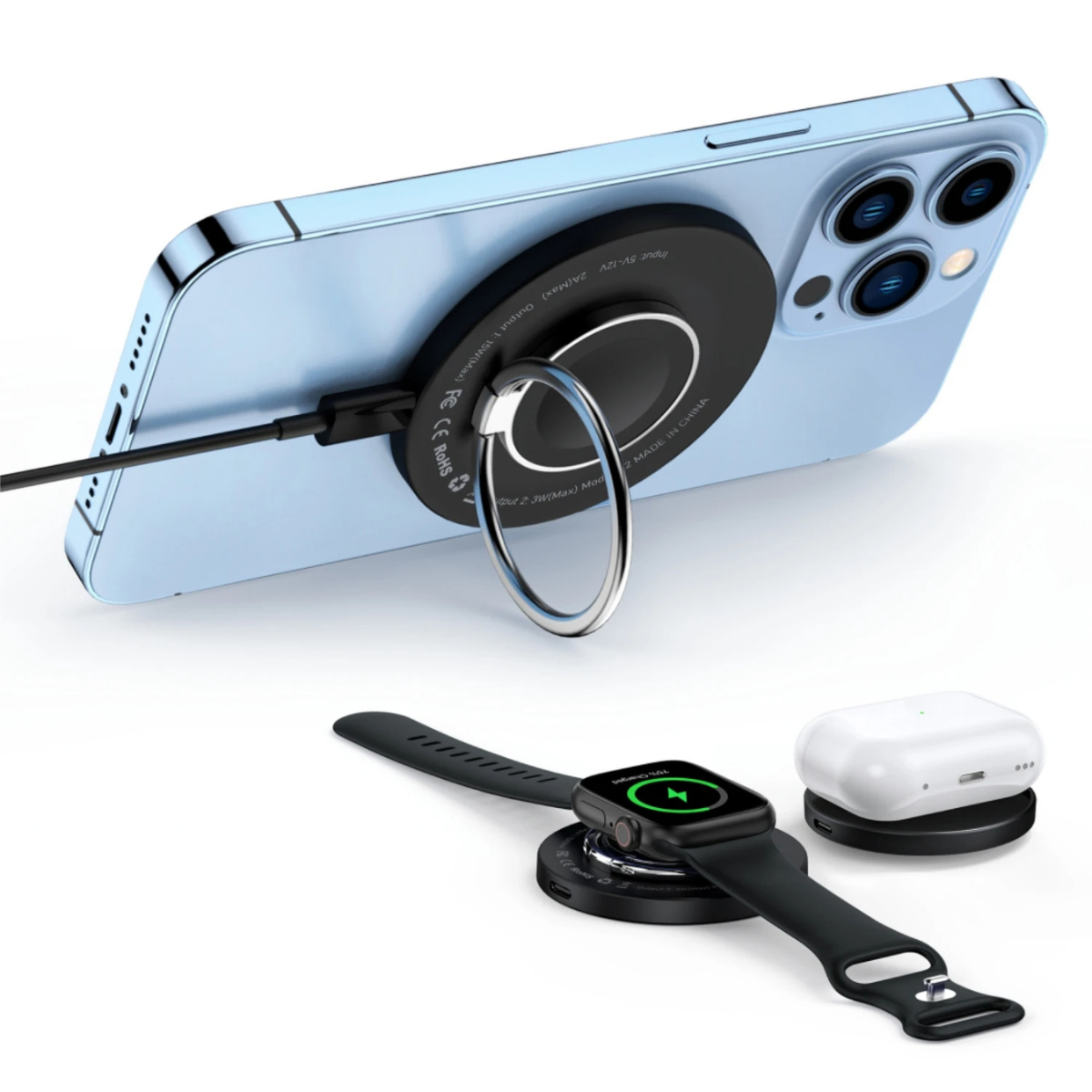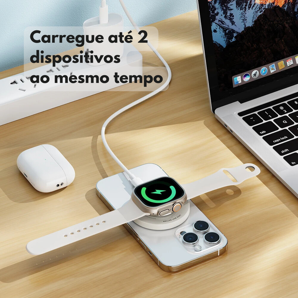 Diga adeus aos fios embolados e carregadores múltiplos! Com um sistema magnético poderoso, você carrega três dispositivos ao mesmo tempo, de forma segura e eficiente, sem precisar se preocupar com superaquecimento ou quedas de conexão.
