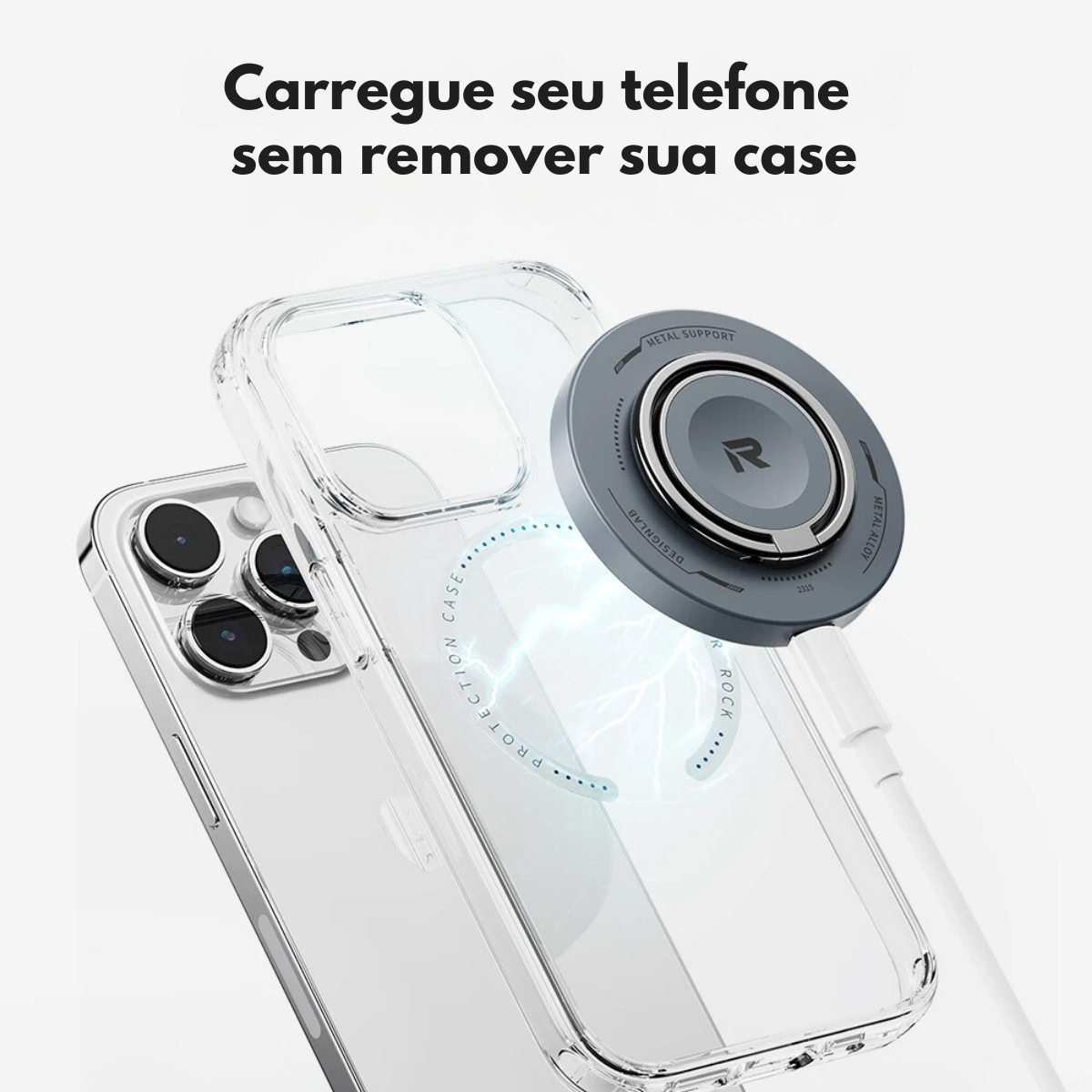 🚀 Ímã embutido ultra potente – Mantém o celular firmemente acoplado.