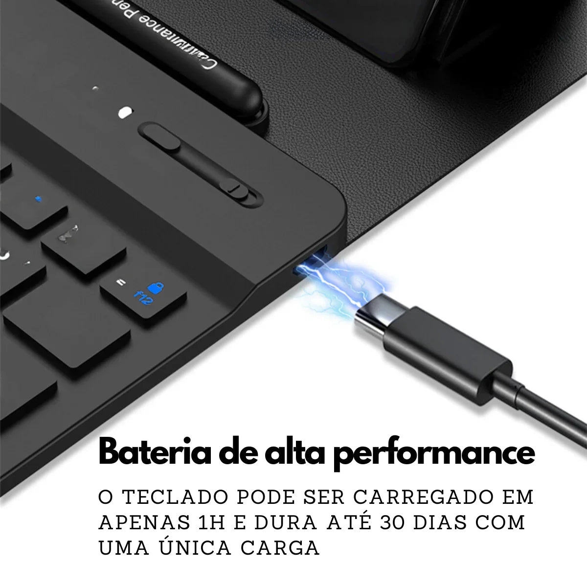 Leve, compacto e com até 30 dias de bateria. Digitação confortável com resposta rápida — ideal para produtividade real, mesmo longe do notebook. -