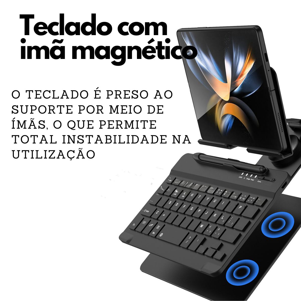 ✔ Teclado Magnético Premium: teclas macias estilo MacBook, estrutura tipo tesoura e imã integrado para estabilidade total e digitação silenciosa.