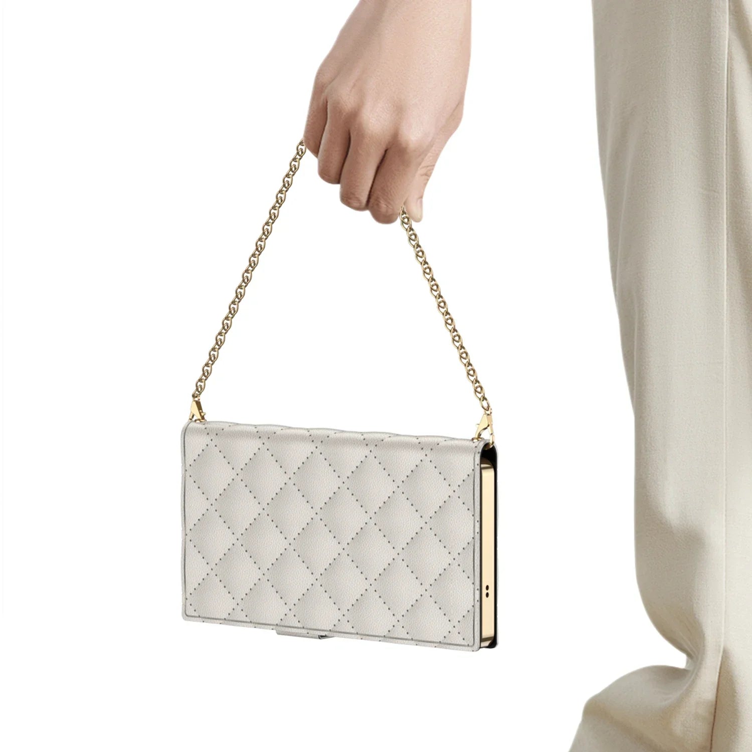 Cada elemento da Carteira Elite foi pensado para impressionar. Confeccionada em courino de alta qualidade, ela oferece um toque suave e um visual impecável. Os detalhes fazem a diferença: o fecho magnético discreto garante segurança, as laterais com acabamento cromado (eletroplating) e a elegante alça de mão em liga de zinco dourada adicionam um toque de brilho e requinte ao conjunto.