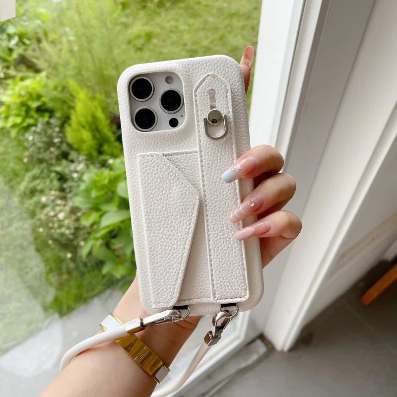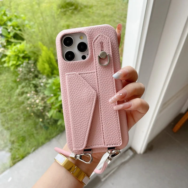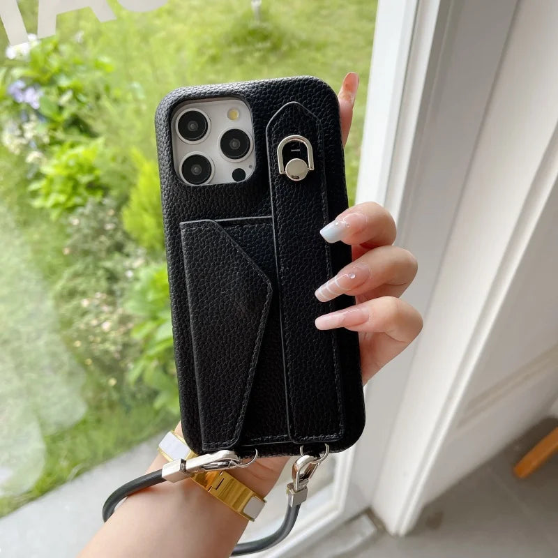 - Características: Alça de mão multifuncional (grip e suporte), porta-cartões, alça de pulso removível, proteção anti-impacto, acabamento premium.