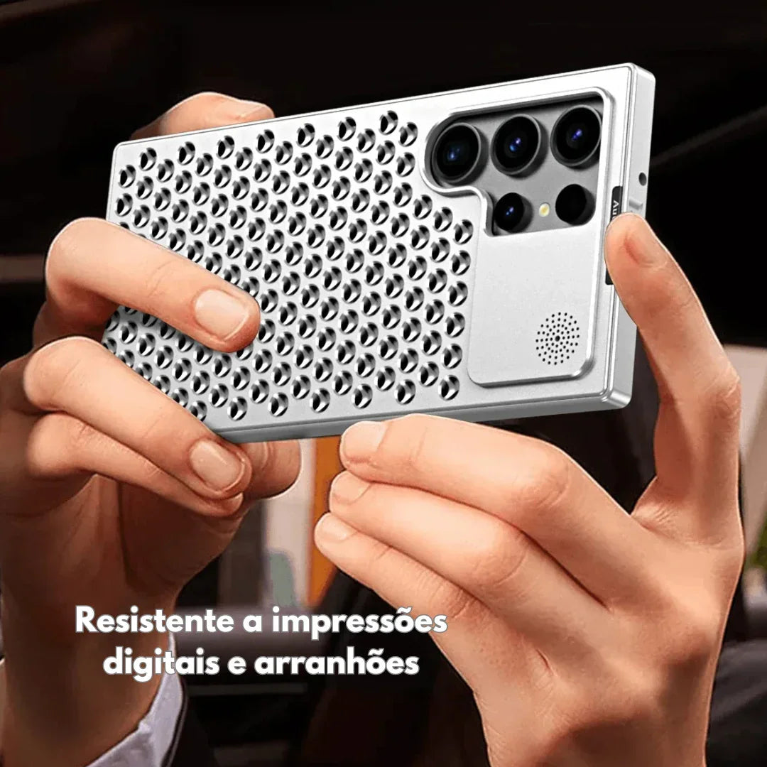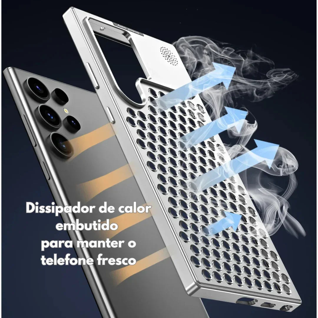 Feita com metal de alumínio durável, esta capa não apenas protege seu precioso dispositivo contra quedas e arranhões, mas também apresenta um engenhoso dissipador de calor embutido. Mantenha seu telefone fresco durante longas sessões de uso intensivo, sem comprometer o estilo.