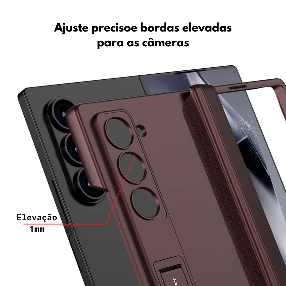 Fechamento Magnético Poderoso: Oito pontos magnéticos estrategicamente posicionados proporcionam um alinhamento perfeito e um fechamento seguro, protegendo a dobradiça do seu Galaxy Z Fold de poeira e sujeira.