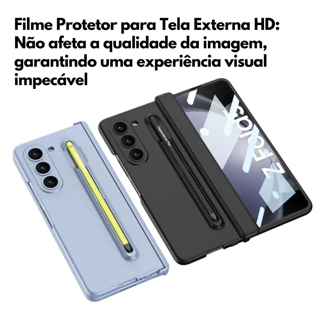 Um filme protetor HD transparente cobre a tela, protegendo contra arranhões e manchas, sem comprometer a qualidade visual. Seu Galaxy Z Fold permanece vibrante e protegido em todos os momentos.
